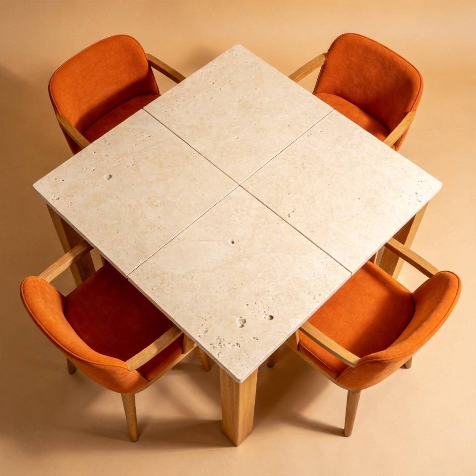 سنگ تراورتن پرکاربردترین سنگ برای میز ناهار خوری به حساب میاد؛ چون مقاومت و دوام بالا، مقاومت بالا در برابر رطوبت، نگهداری آسون و وزن سبکتر نسبت به سنگهای دیگه داره. اگه قصد خرید تراورتن رو داری، بهتره این سنگ رو با زمینه رنگی کرم یا سفید سفارش بدی.