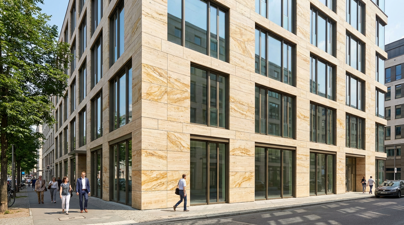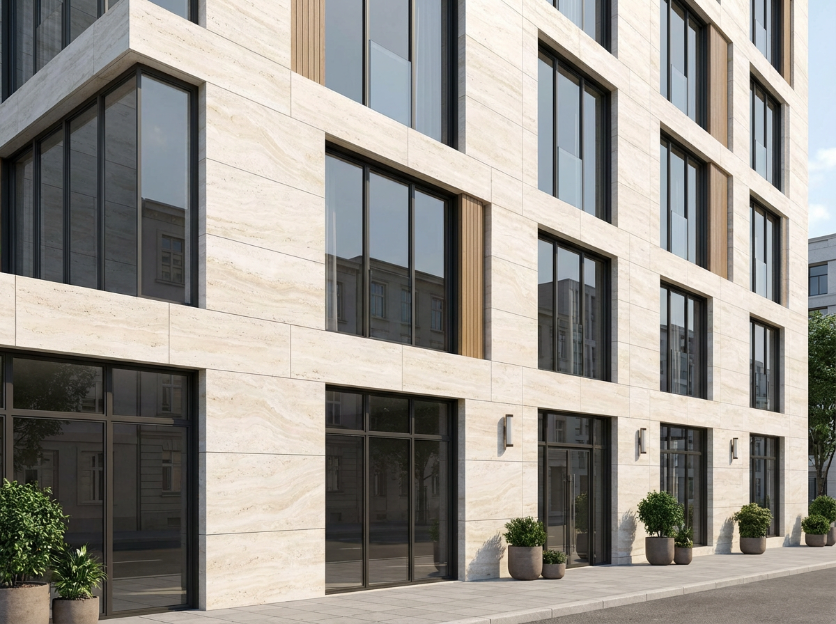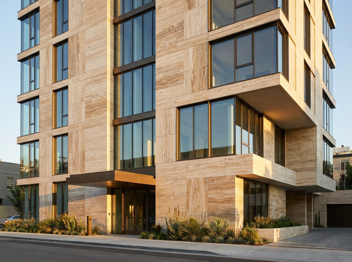 یکی از محبوبترین و ارزان ترین سنگ های نما تو بازار، تراورتنه. سنگ تراورتن بهخاطر بافت متخلخل، چسبندگی خیلی خوبی با ملات داره و همین باعث شده گزینهی مطمئنی برای نمای بیرونی باشه. سنگهای تراورتن ارزون معمولا رگهها و موجهای نامنظمتری دارن، رنگهاشون کرم تیره، شکلاتی یا خاکستریه و تخلخلشون نسبت به نمونههای لوکس بیشتره.