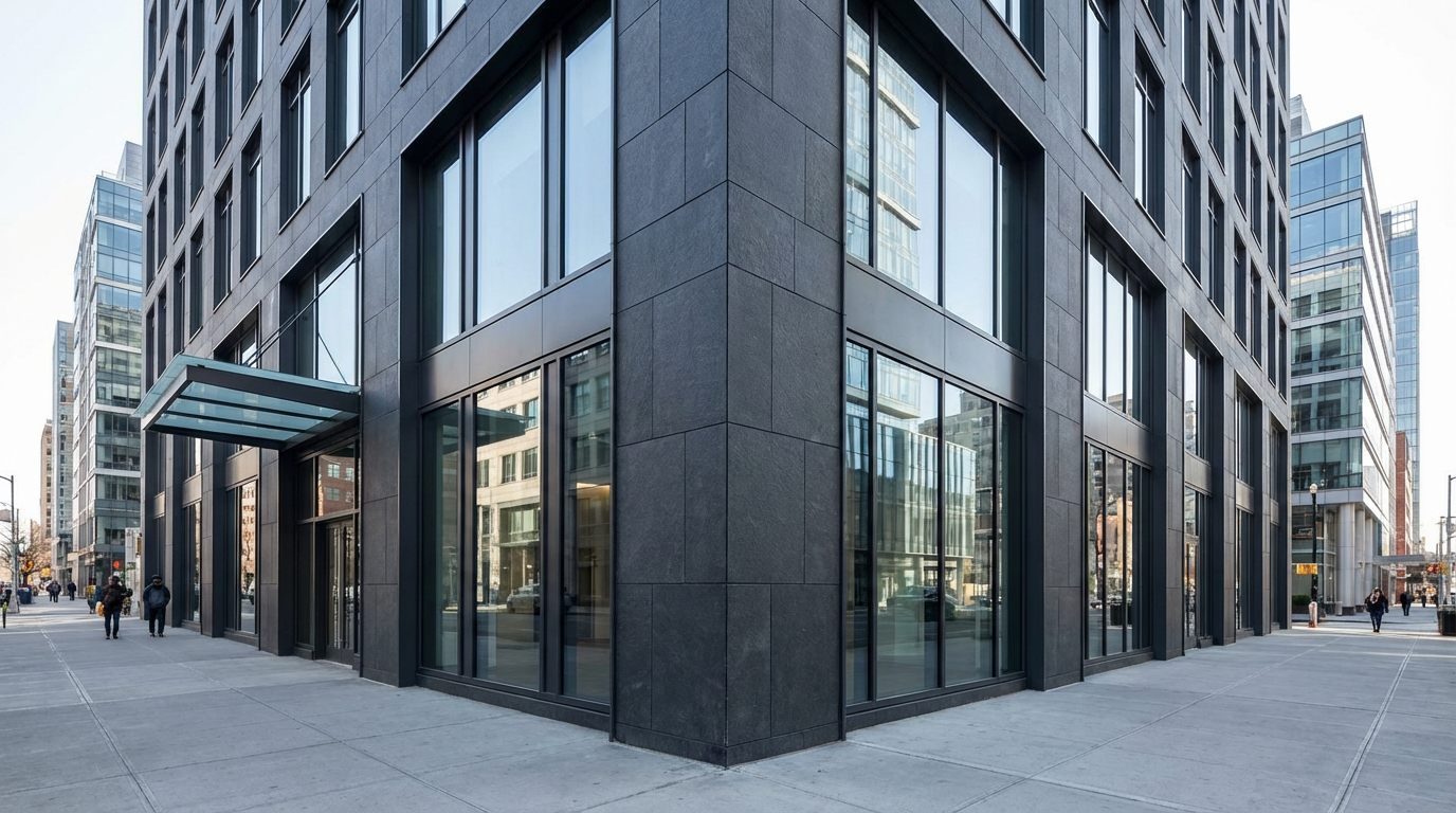 شاید اسم بازالت رو بهاندازه تراورتن نشنیده باشی؛ اما از ارزان ترین سنگ های نما به حساب میاد که بیشتر توی نماهای مدرن به کار میره. سنگهای بازالت ظاهر ساده و مینیمالی دارن و بیشتر به رنگ تیره (مشکی یا طوسی تیره) دیده میشن. همچنین مقاومتشون در برابر سایش و شرایط جوی خیلی زیاده.